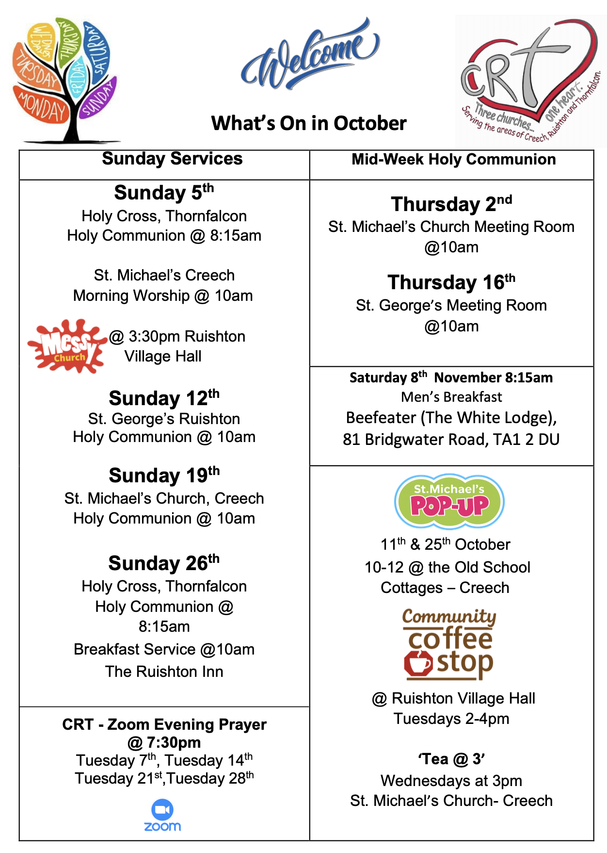 For times of services in each church please go to the following pages: