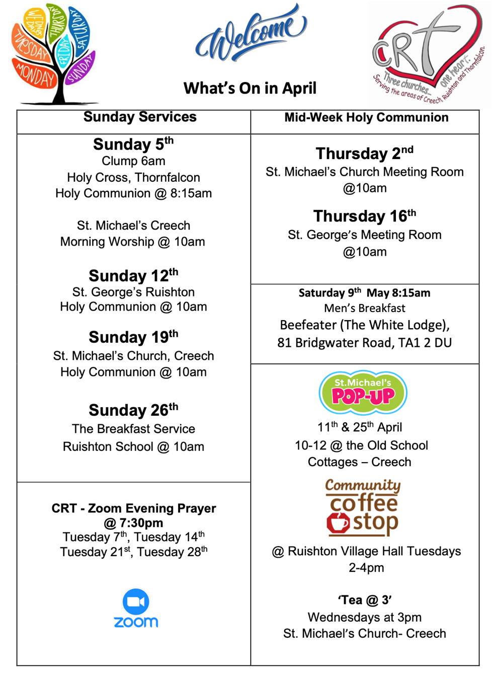 For details of services in each church please go to the following pages: